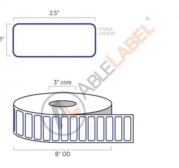 2.5" x 1" Thermal Transfer White Polypropylene Label w/ Blue Border - PMS Process Blue - 3" Core - Industrial Printer Label Rolls